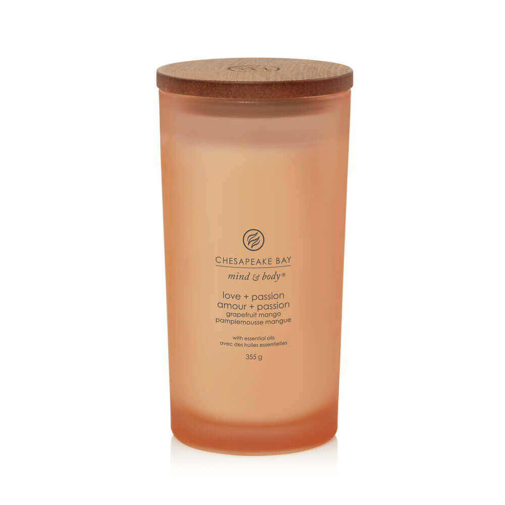 Experience a fragrance filled journey into wellness. From the first lighting, you will be inspired. The mood enhancing fragrance infused with pure essential oils and a soy wax blend with softly coloured frosted glass creates a peaceful, spa like feel especially when lit. The wood grain lid adds a comforting element of nature, making this candle a beautiful gift for yourself or others. Made in the USA with materials from around the world.