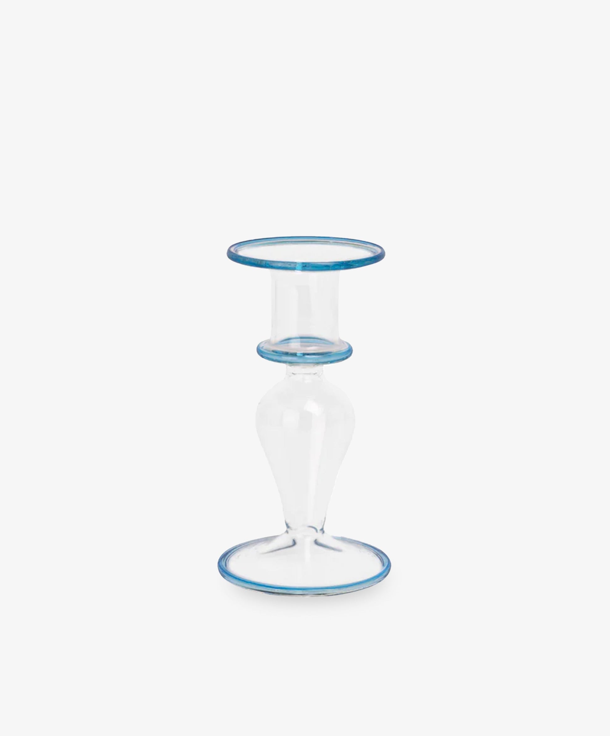 A simple shape with a colorful accent, the minimalist design of this glass candleholder is effortlessly stylish. The subtle pop of color adds a fresh twist on a timeless silhouette.