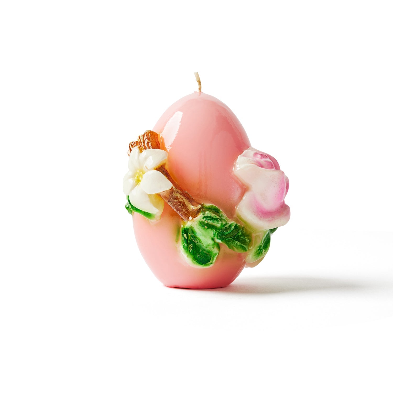 Italian Small Egg Shaped Candle with Floral Trim - Pink