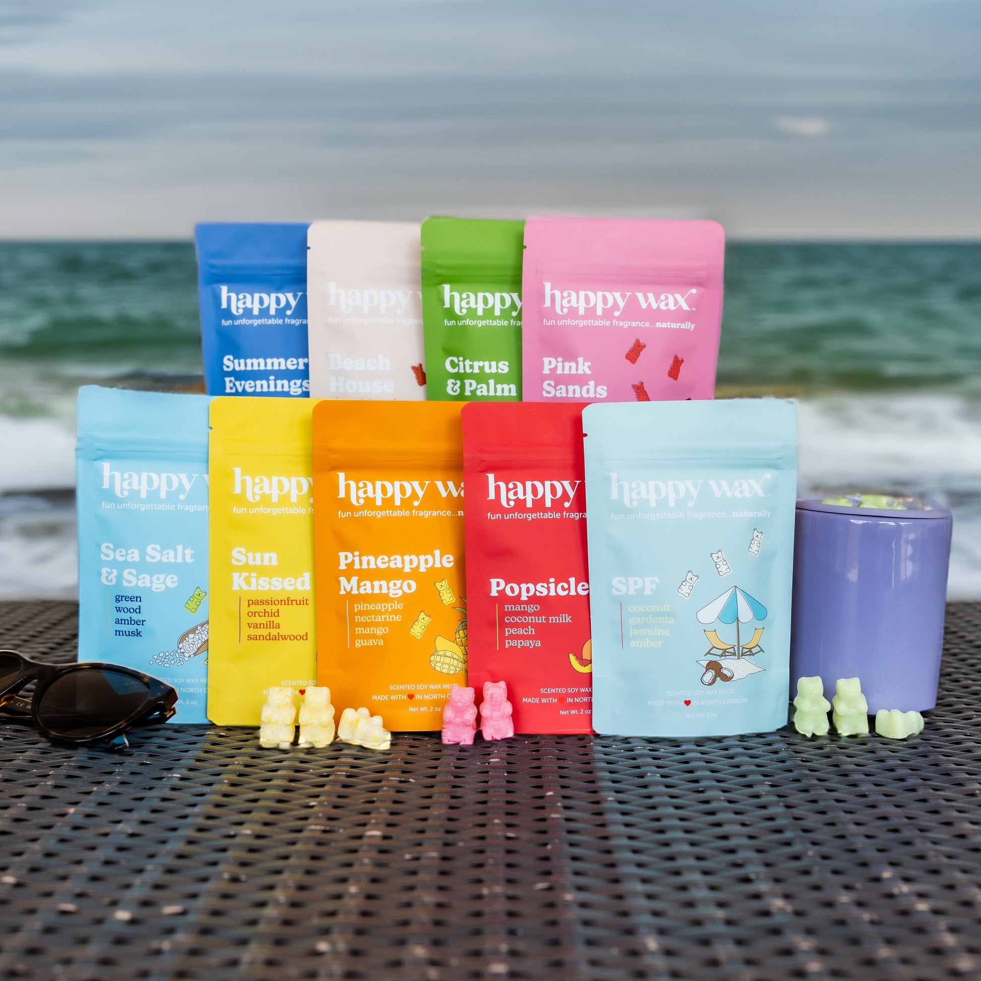Included in this bundle are (1) Lilac Mini Mod Wax Warmer and (9) 2oz pouches of our Summer scents, detailed below!