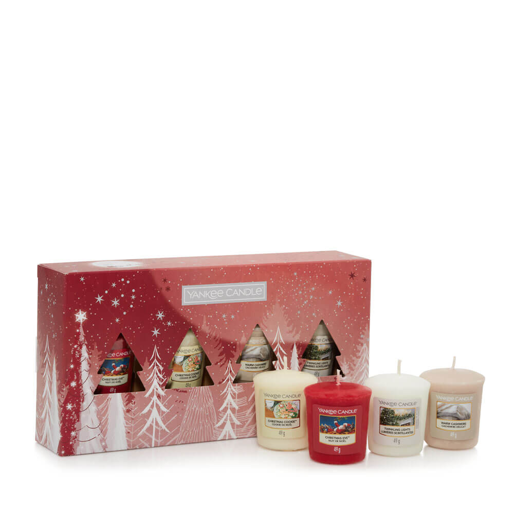 Includes - 1 x Christmas Eve Original Votive Candle, 1 x Christmas Cookie Original Votive Candle, 1 x Warm Cashmere Original Votive Candle, 1 x Twinkling Lights Original Votive Candle.